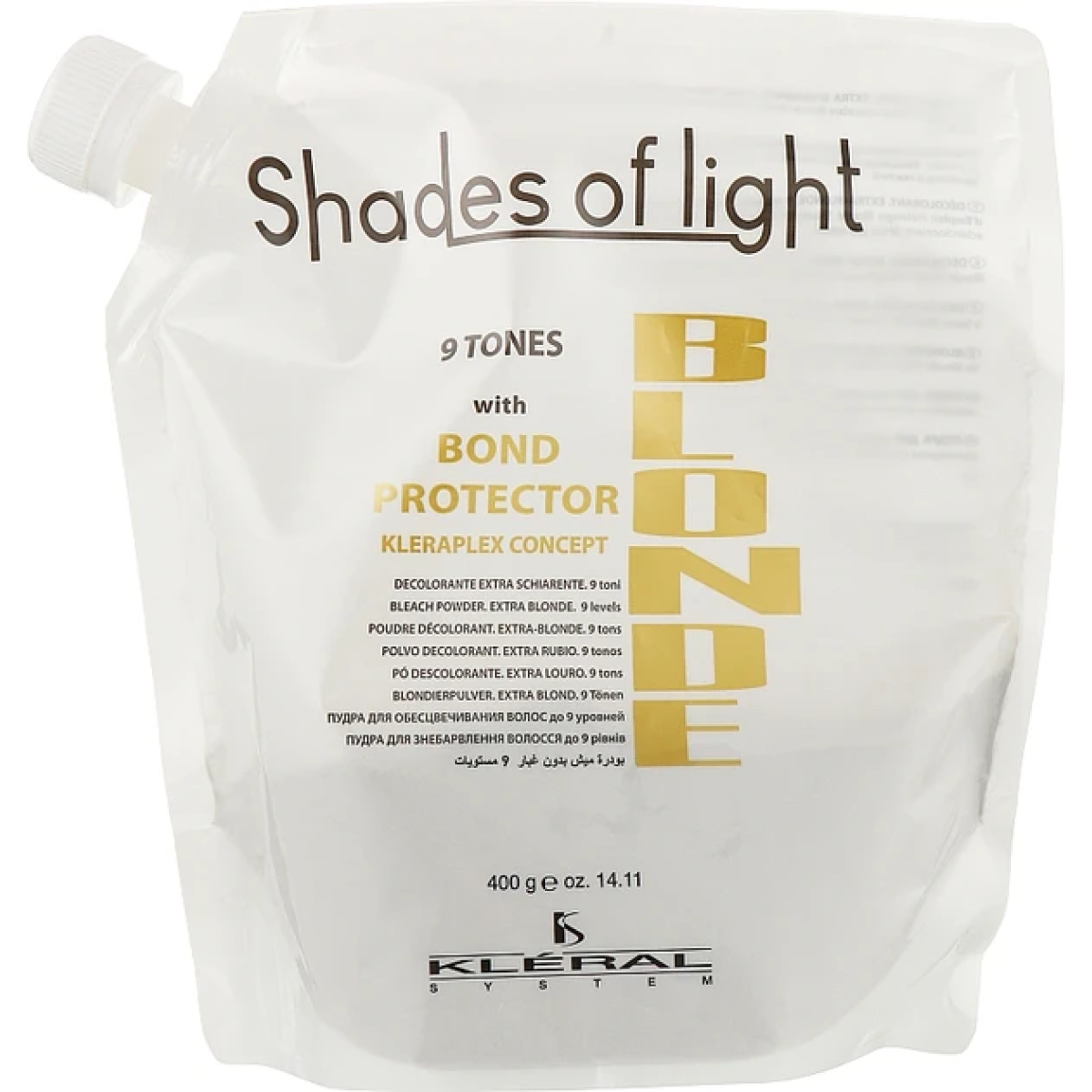 Особливості Space Blonde Star Powder 9 Lever від бренда Kleral System: - має формат професійної безпилової пудри; - висока освітлювальна здатність до 9 рівня; - не ушкоджує структуру волосся, тому придатна навіть для тонких і знебарвлених локонів; - дає змогу домогтися бажаного платинового відтінку жовтизни; - проста і зручна у використанні; - перед застосуванням необхідно змішати з відповідною освітлювальною емульсією.